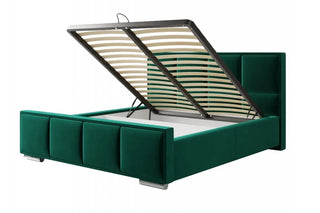 Łóżko to posiada duży komfortowy pojemnik na pościel oraz stelaż drewniany z 32 listwami sprężynującymi.