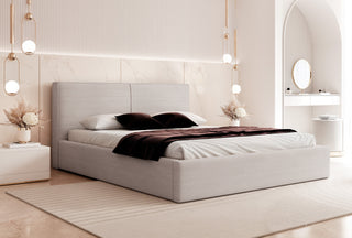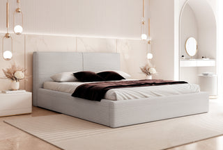 KAMOS to niezwykle szykowne łóżko tapicerowane posiadające piękne wezgłowie i jego sztruksowy materiał nadaje piękny i elegancki efekt.