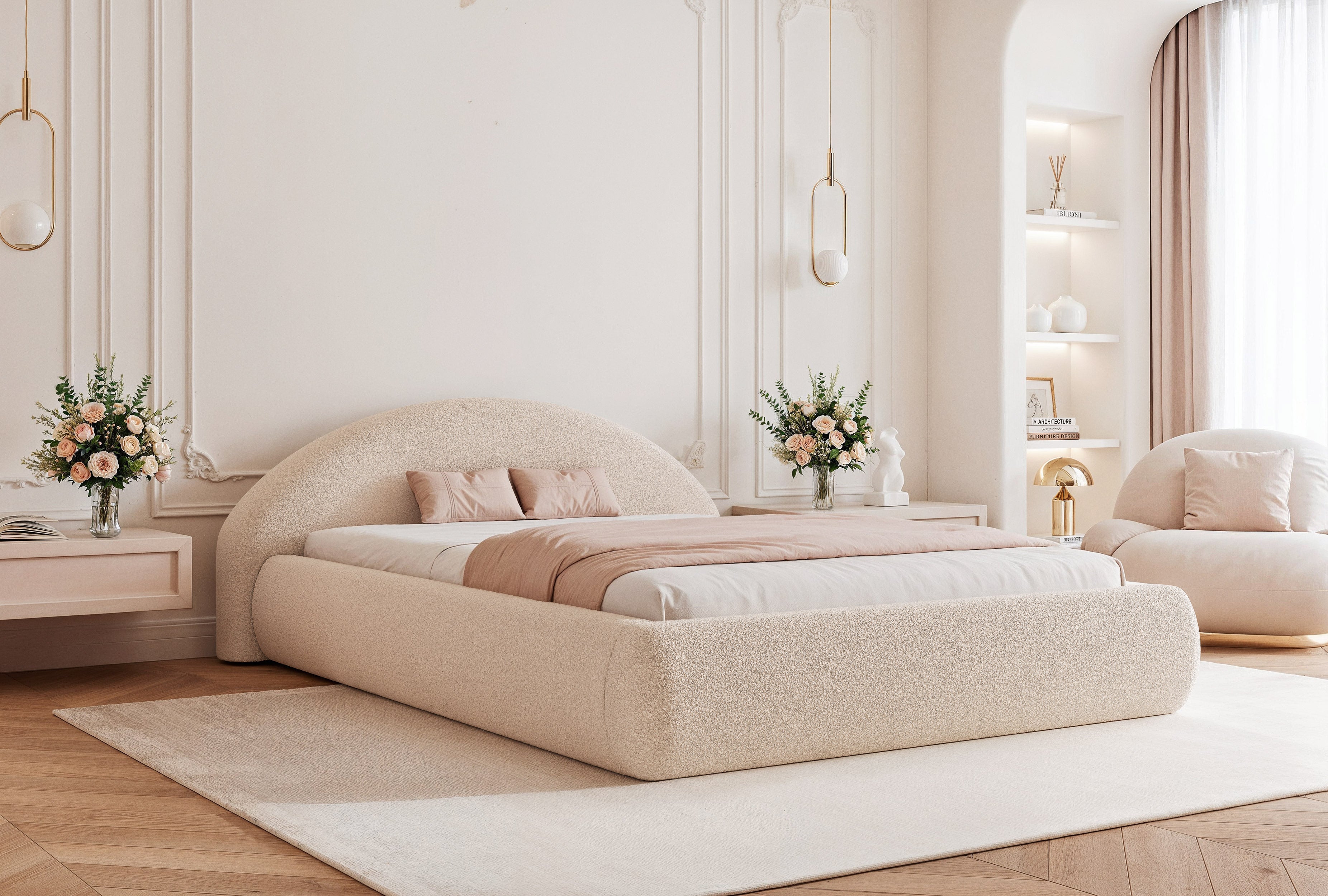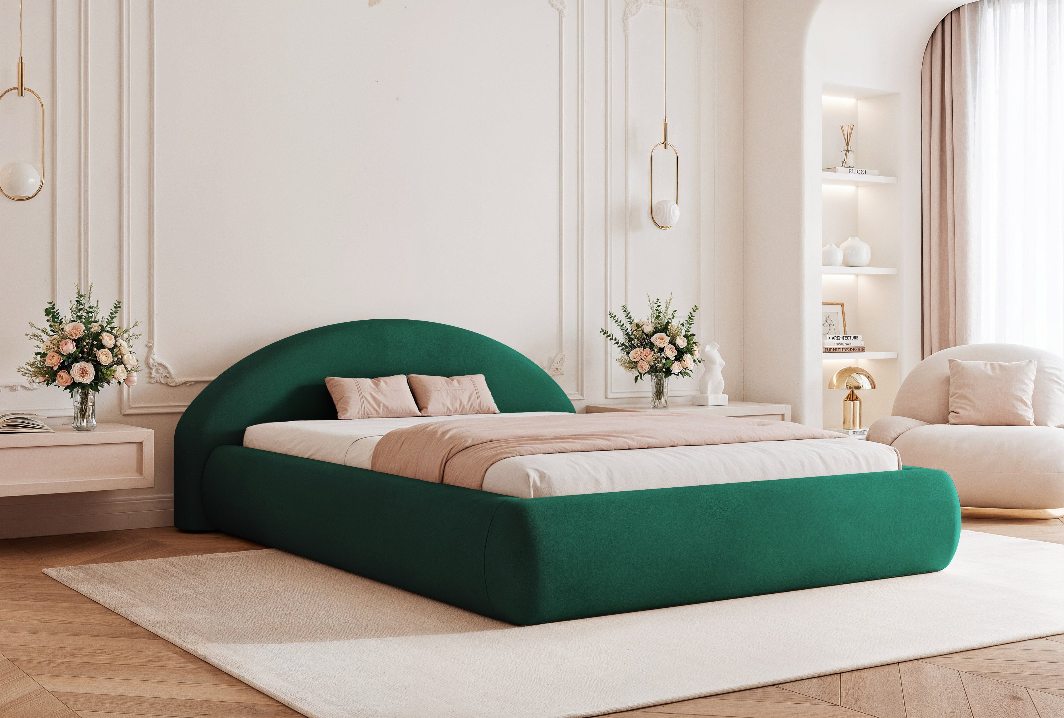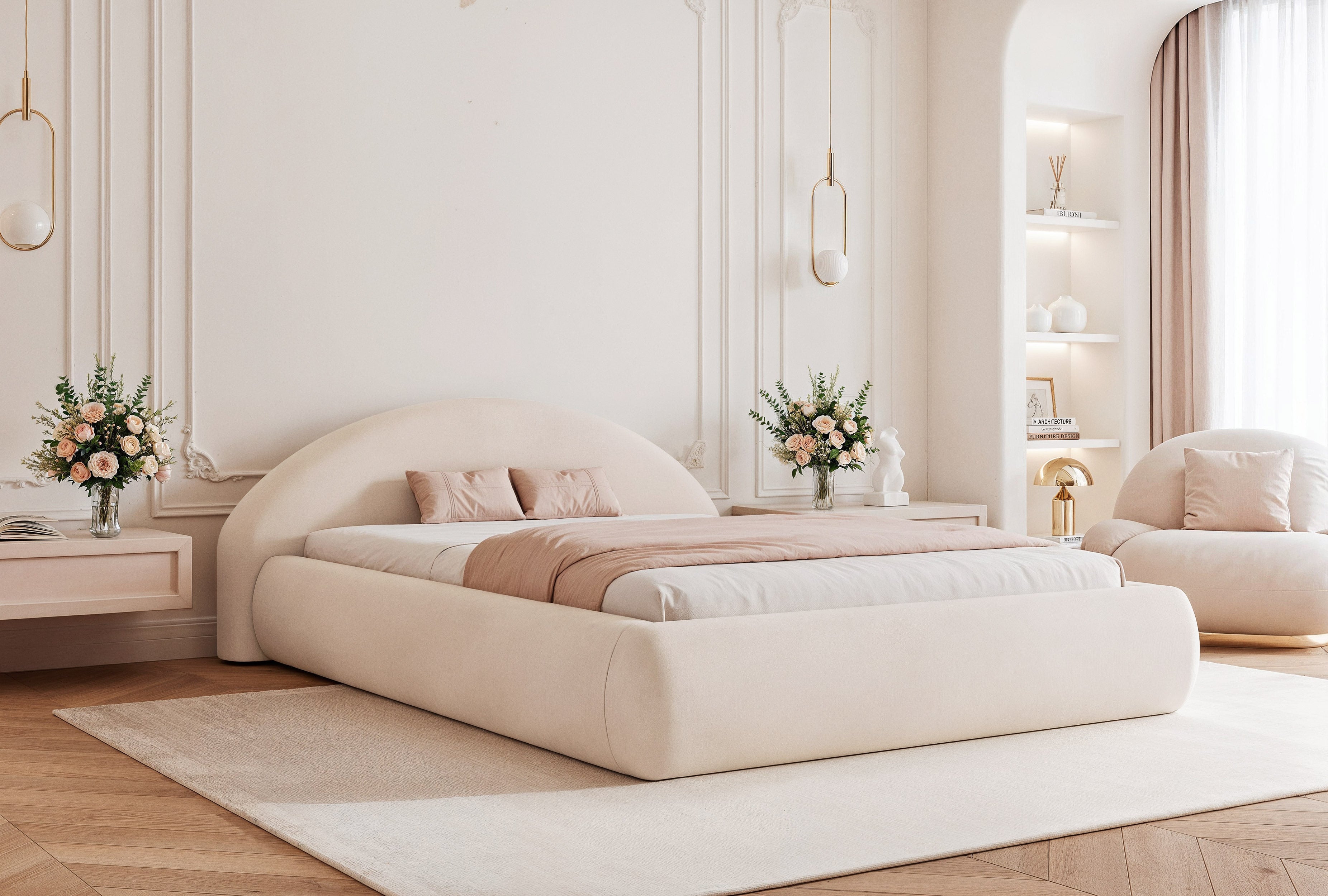 Łóżko zapewnia komfortowy wypoczynek oraz staje się centralnym punktem każdej sypialni. Idealny wybór dla osób ceniących luksus i wyjątkową estetykę.