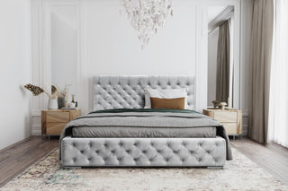 • Wysoki zagłówek oraz przód łóżka w stylu "Chesterfield"