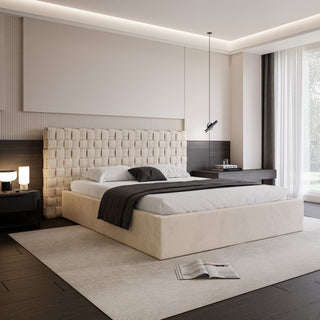 Neutralna kolorystyka sprawia, że łóżko harmonijnie współgra z różnorodną paletą barw, stanowiąc doskonałą bazę do dalszych dekoracyjnych eksperymentów. Miękka, przyjemna w dotyku tapicerka dodaje wnętrzu ciepła i przytulności, a solidna konstrukcja zapewnia stabilność i komfort użytkowania przez lata.