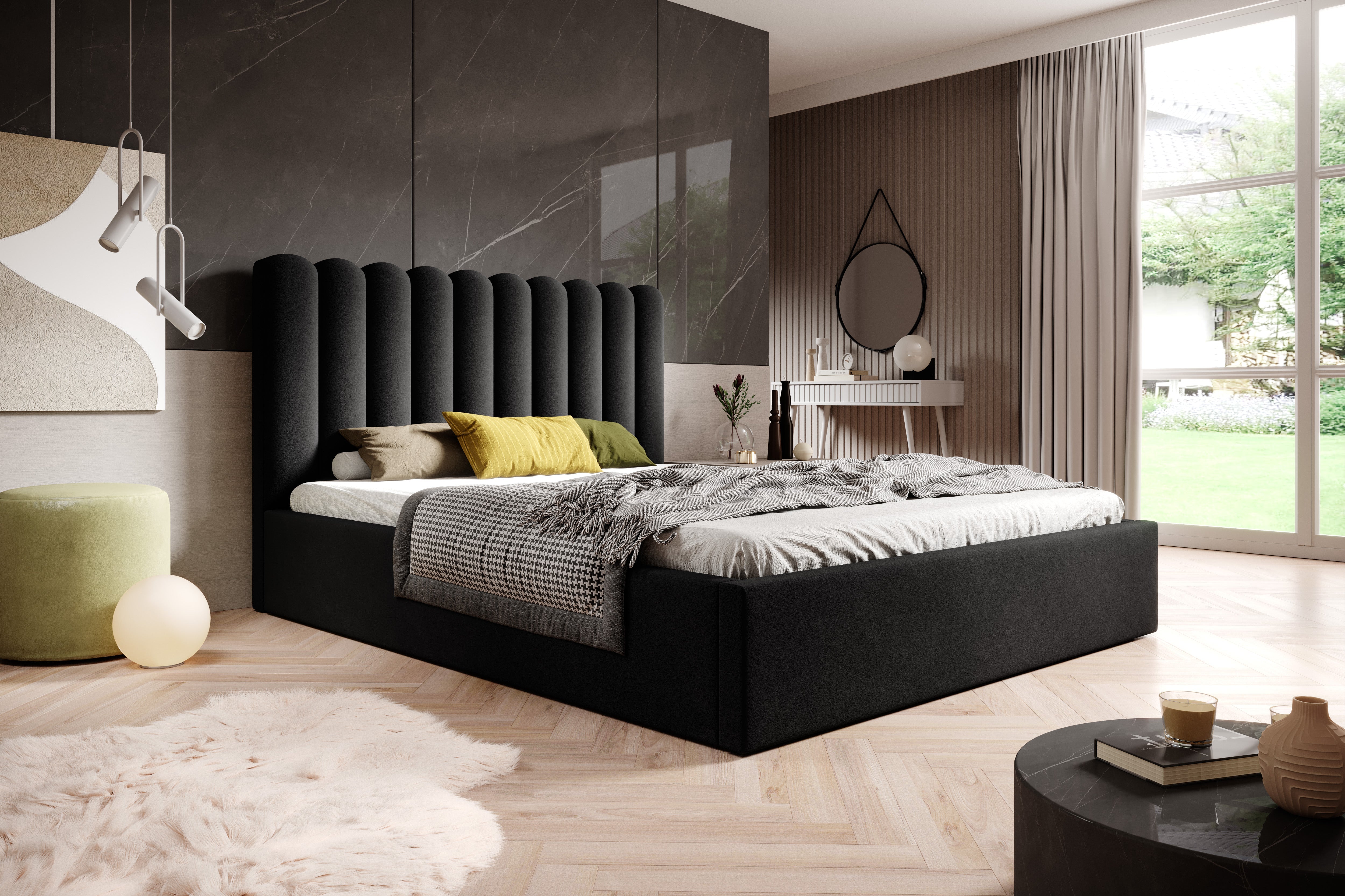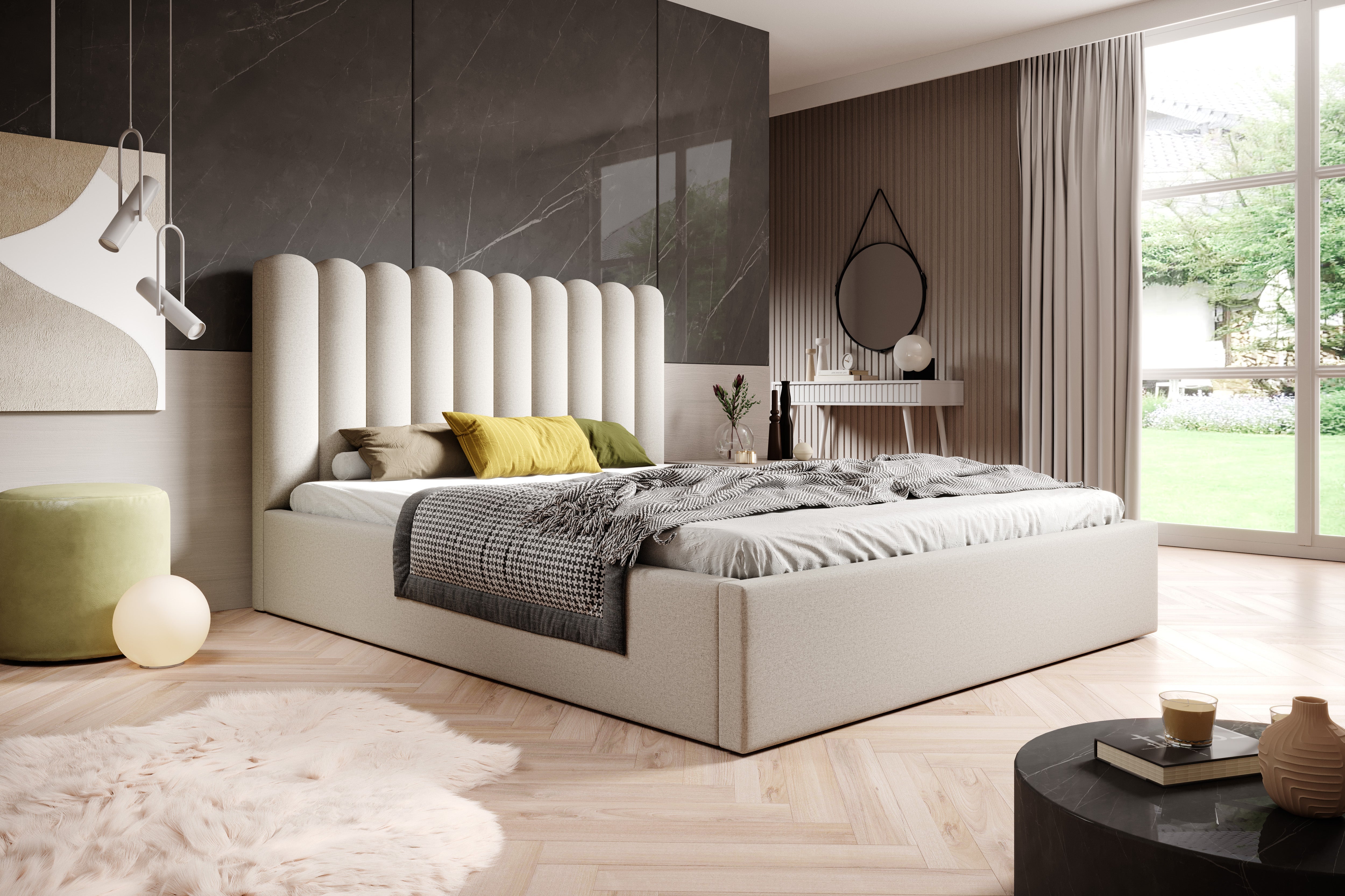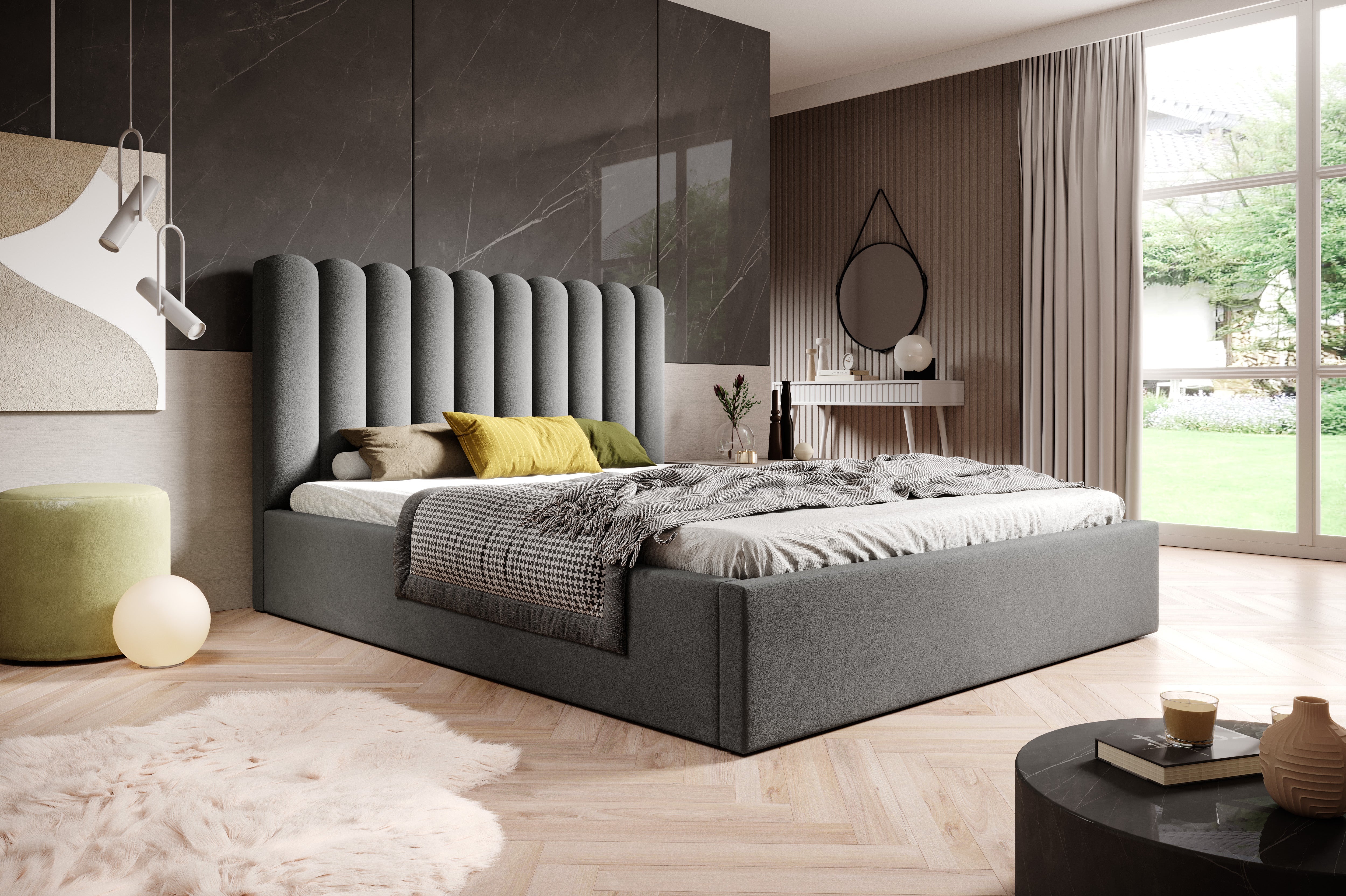 Nowoczesne łóżko z wygodnym zagłówkiem i pojemnikiem – MILVO