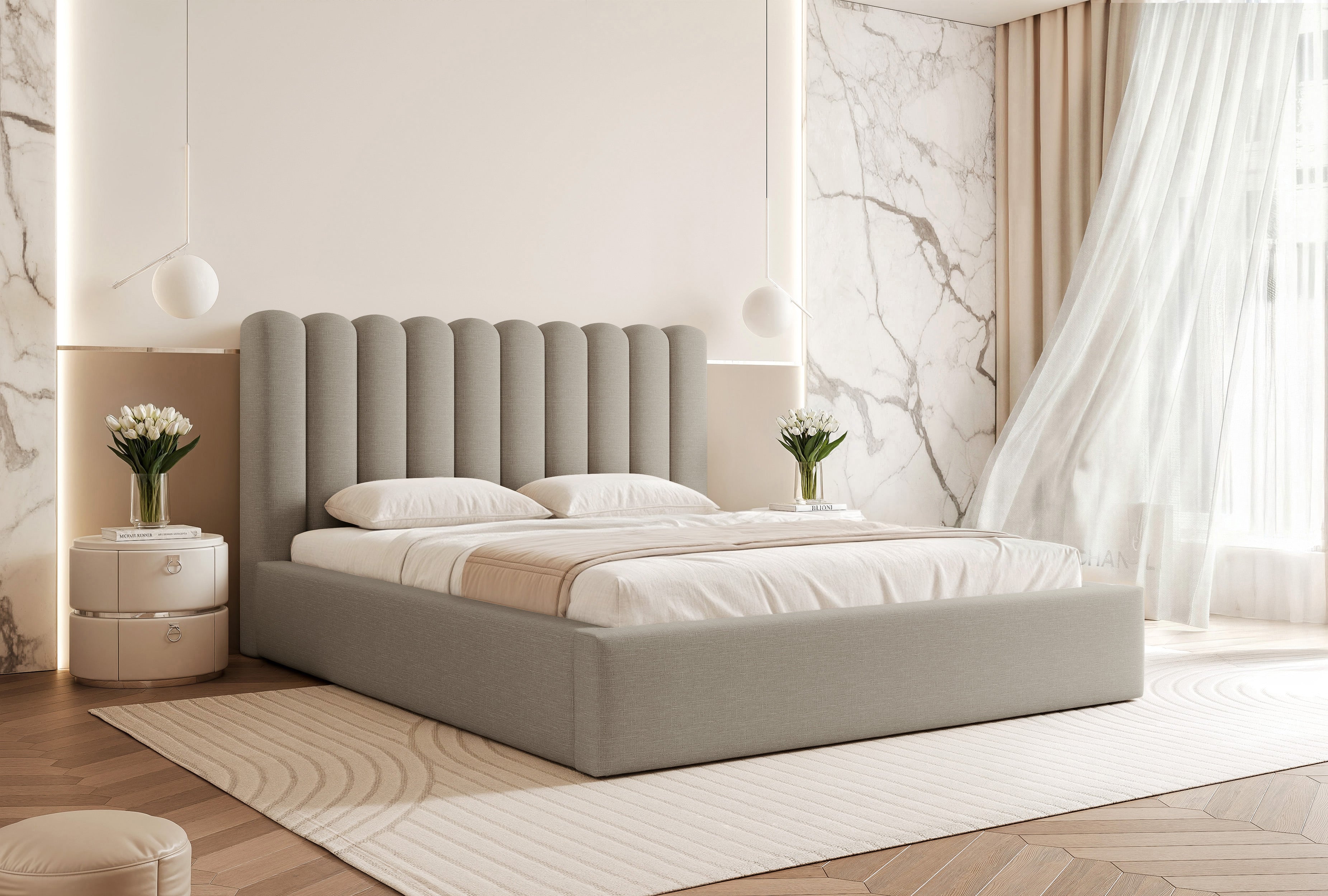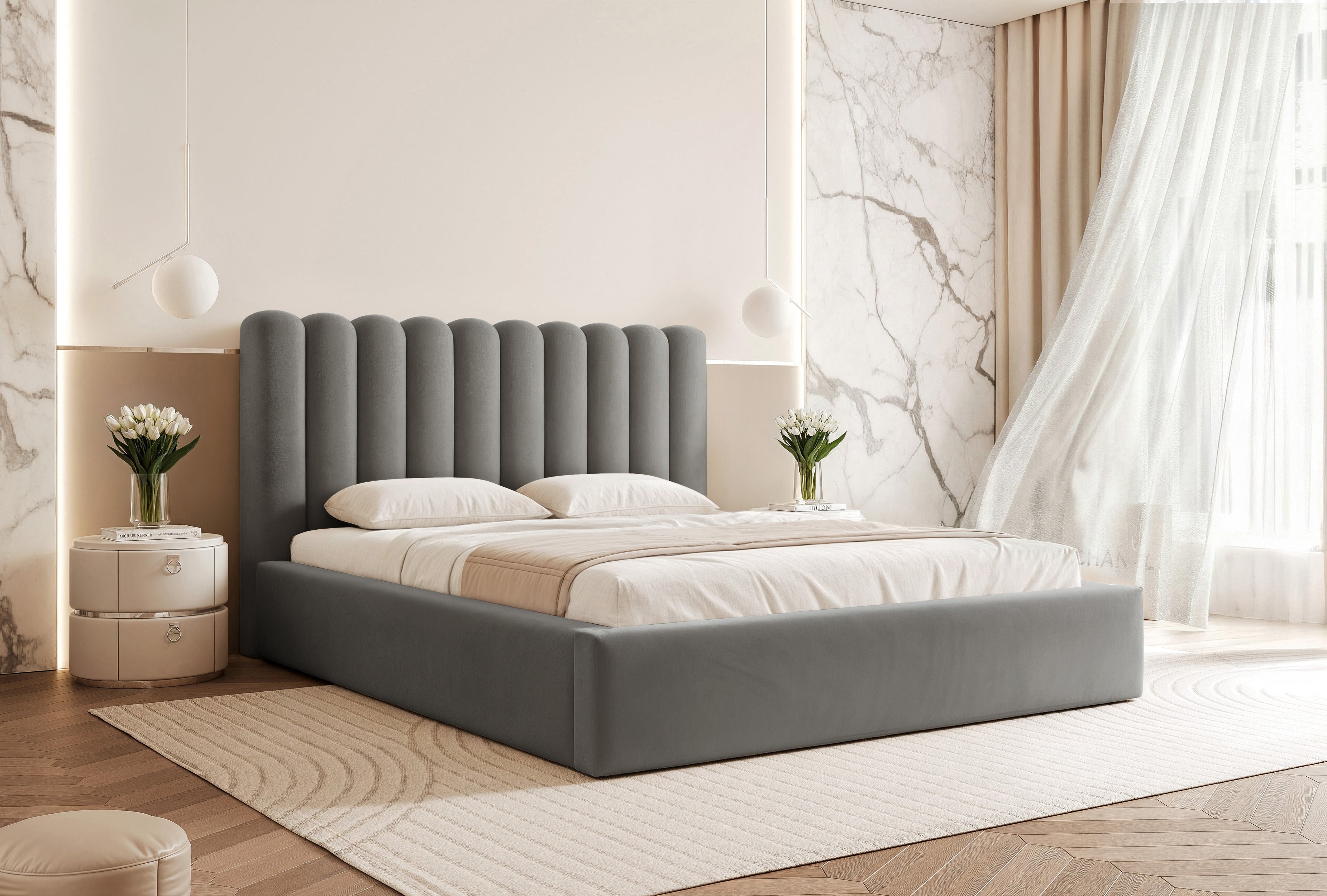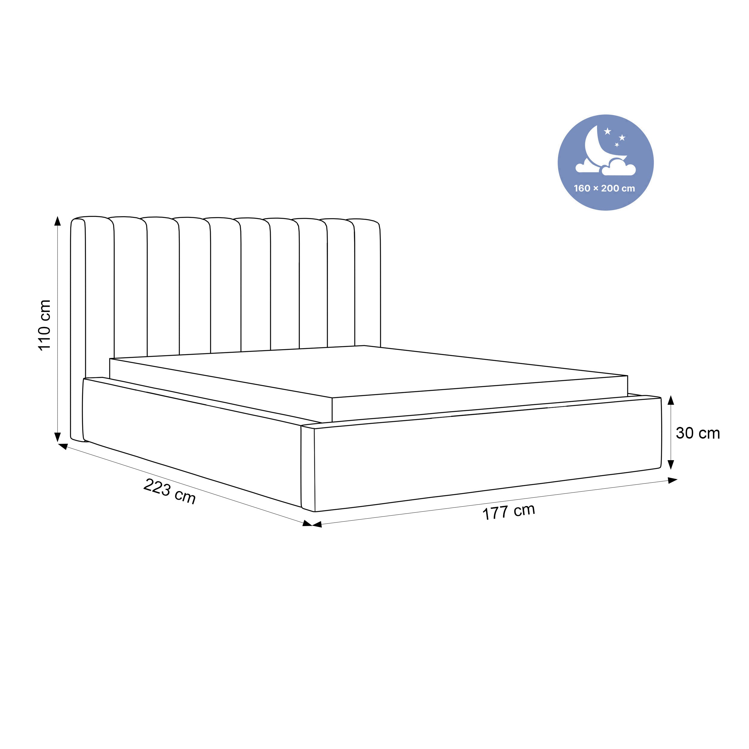 Charakterystyczne uwypuklenia na zagłówku nadają łóżku wyrazisty charakter. Wygodne półwałki pozwalają wesprzeć plecy podczas wieczornej lektury czy przeglądania telefonu. To detal, który docenisz przy codziennym użytkowaniu.