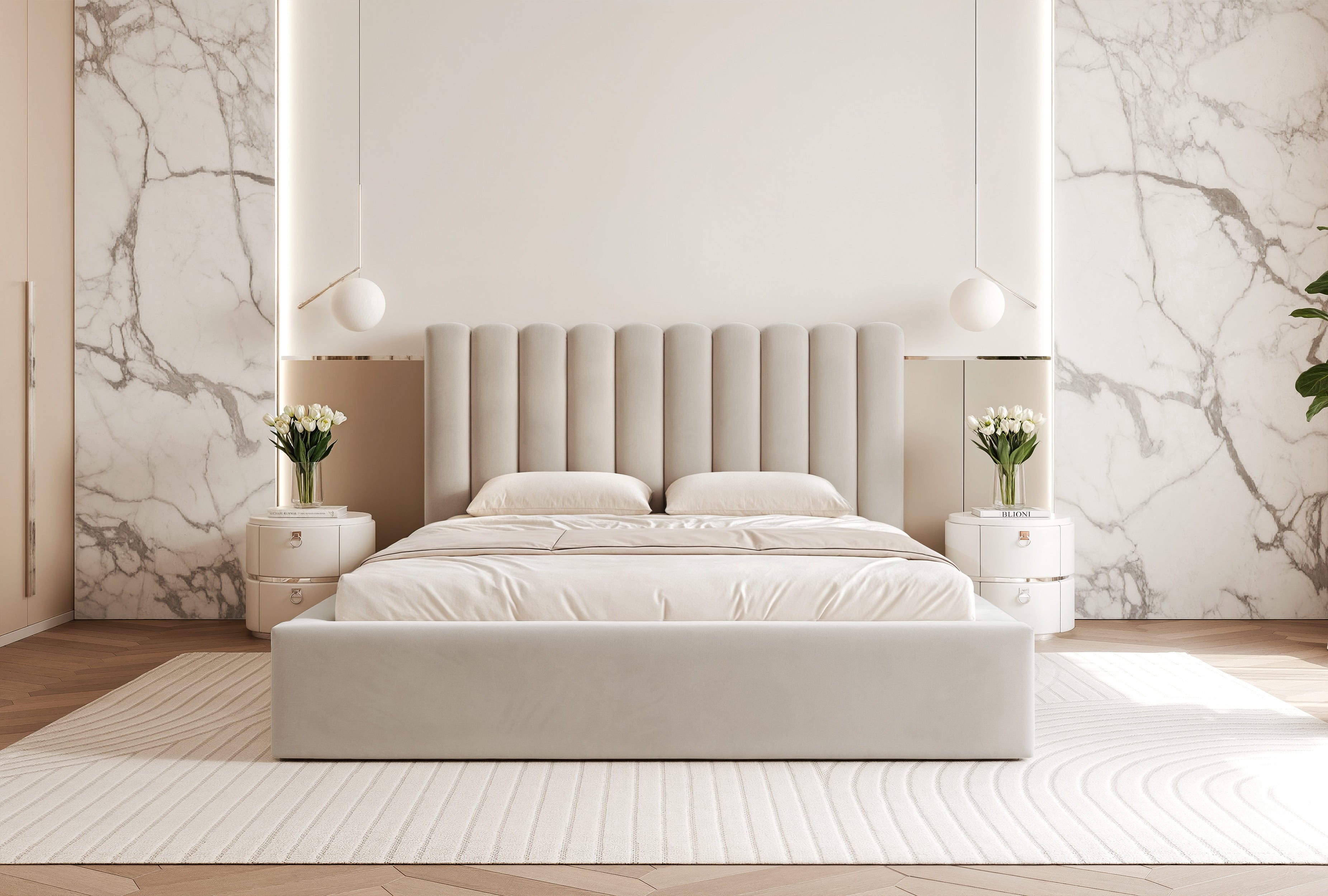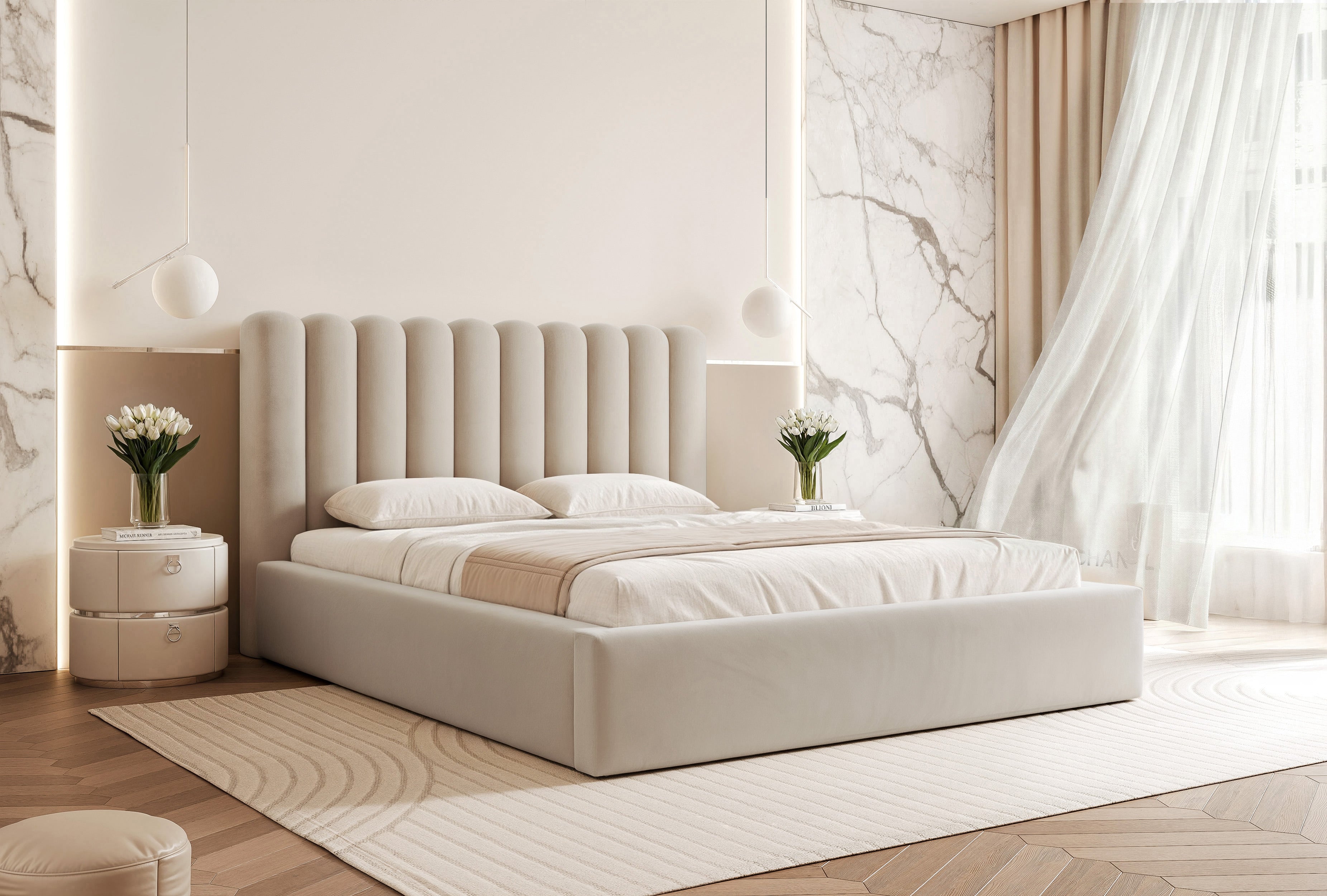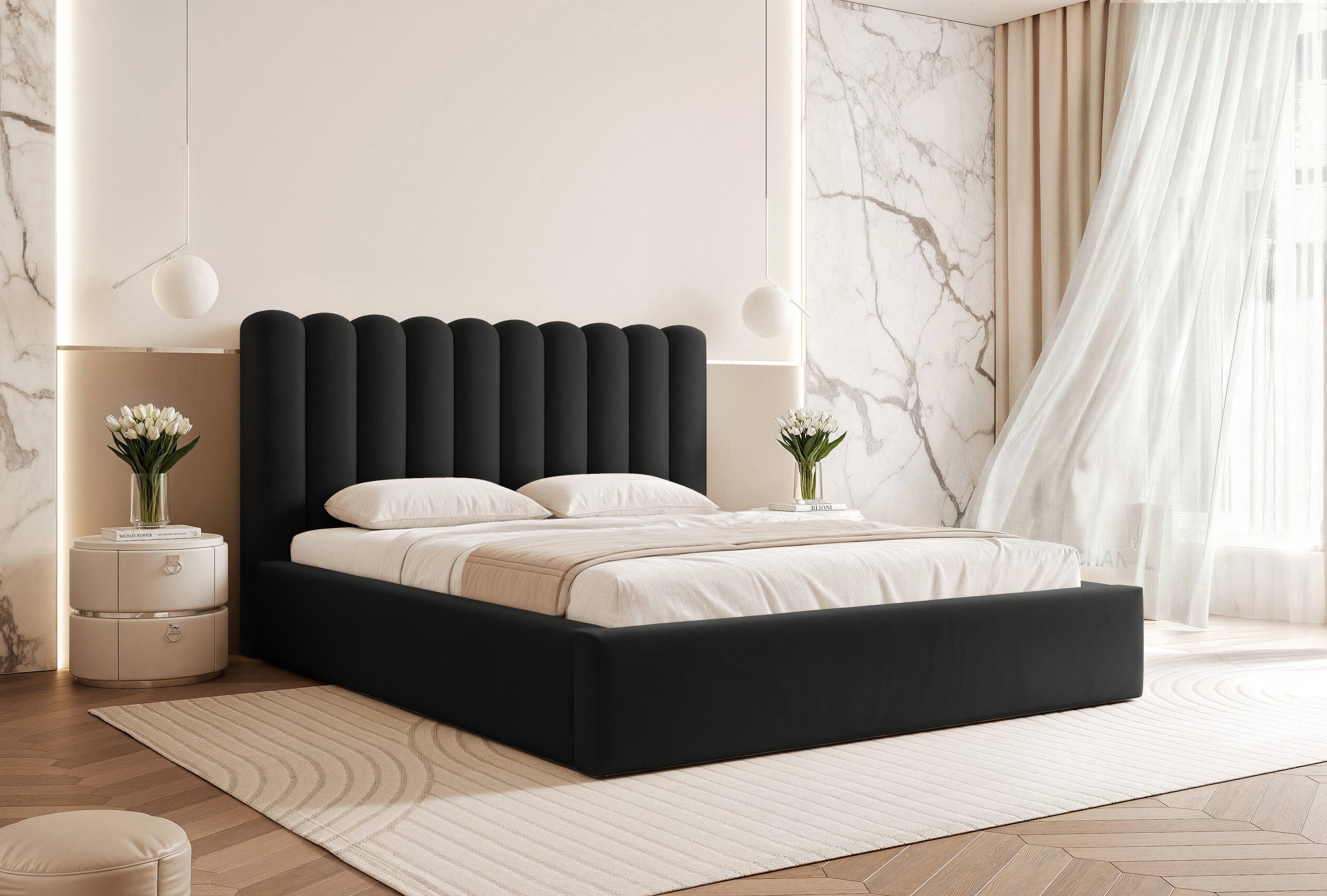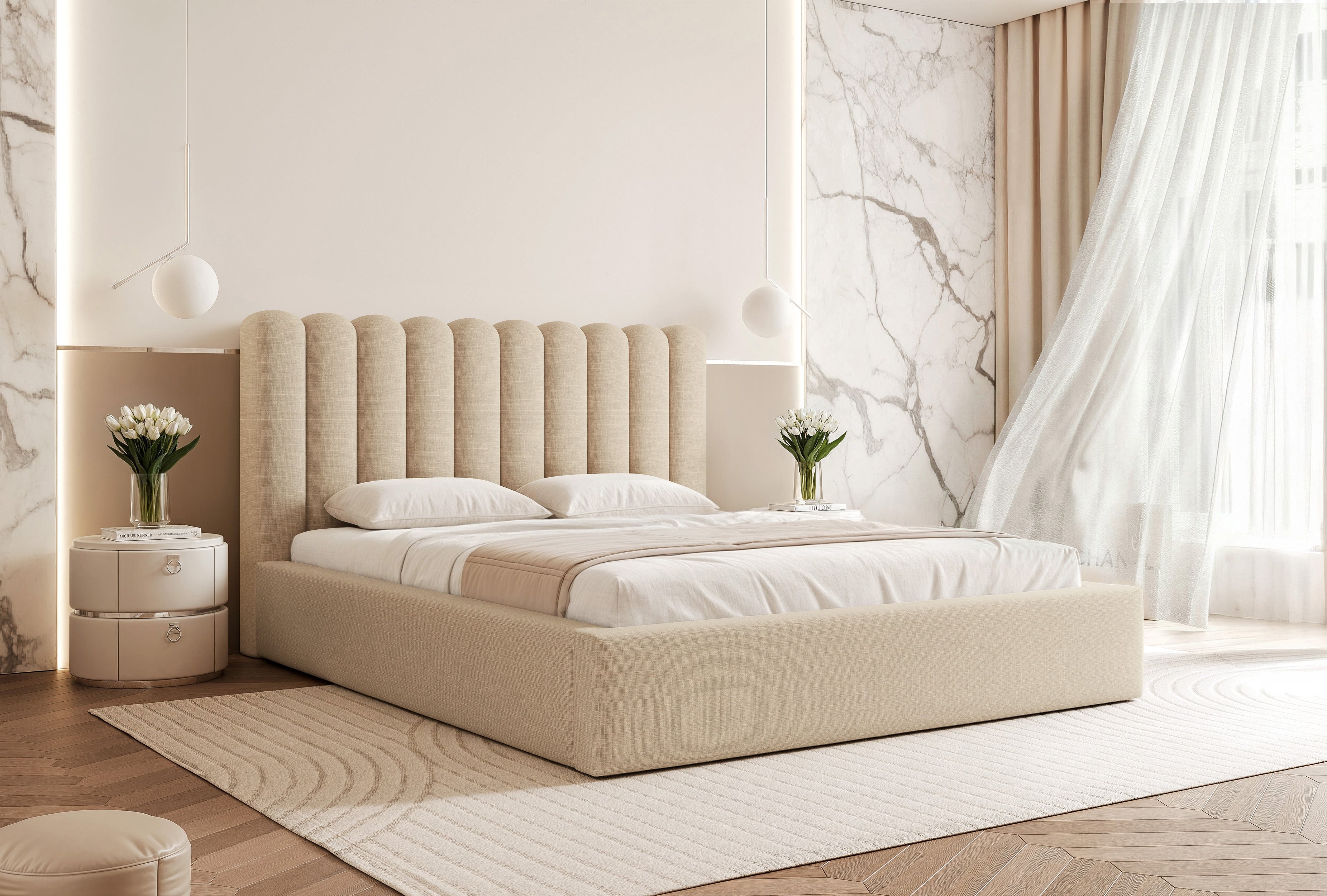 Charakterystyczne uwypuklenia na zagłówku nadają łóżku wyrazisty charakter. Wygodne półwałki pozwalają wesprzeć plecy podczas wieczornej lektury czy przeglądania telefonu. To detal, który docenisz przy codziennym użytkowaniu.