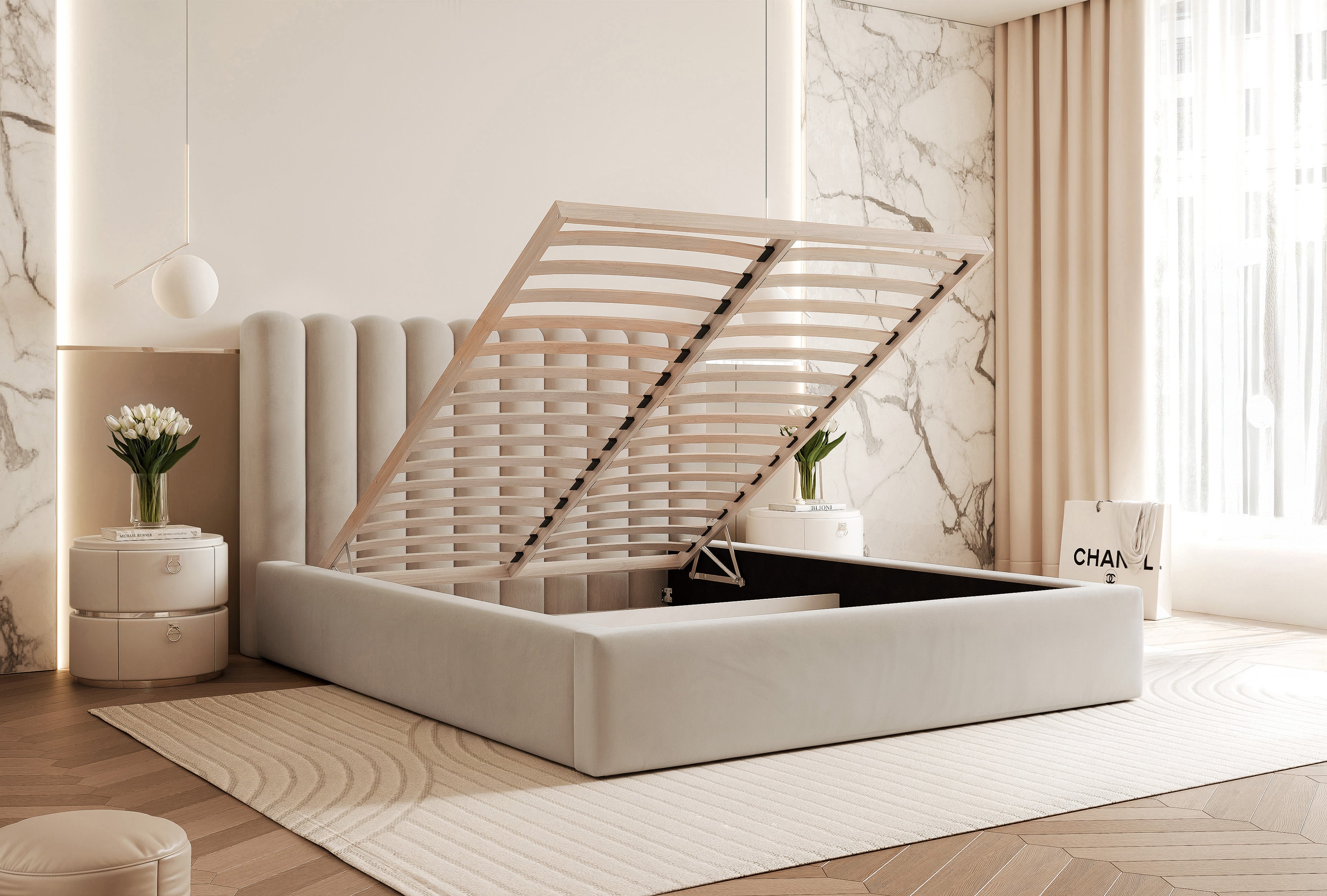 Model Milvo łączy minimalistyczną formę z praktycznymi rozwiązaniami. Drewniany stelaż z 32 sprężynujących listew gwarantuje stabilność i wygodę snu, a pojemnik pod całą powierzchnią łóżka pomoże zachować porządek w sypialni. To uniwersalny wybór dla osób ceniących jakość i prosty design
