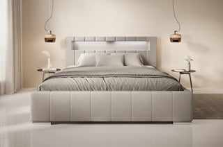 Łóżko zapewnia komfortowy wypoczynek oraz staje się centralnym punktem każdej sypialni. Idealny wybór dla osób ceniących luksus i wyjątkową estetykę.