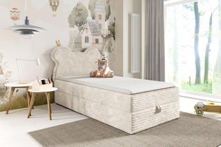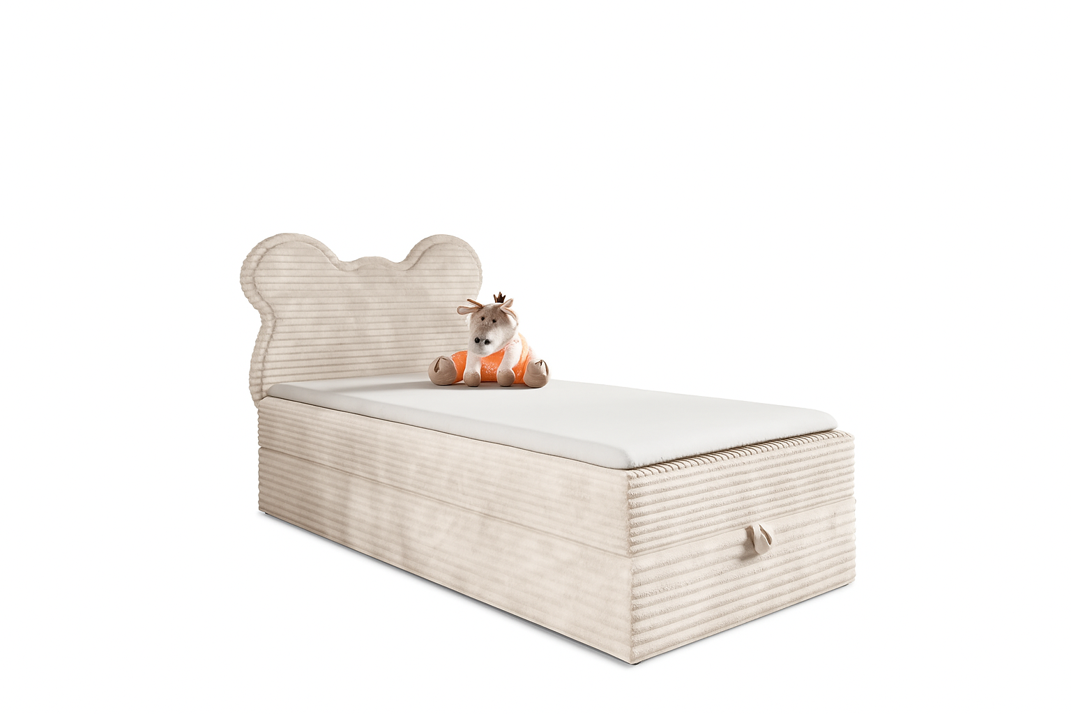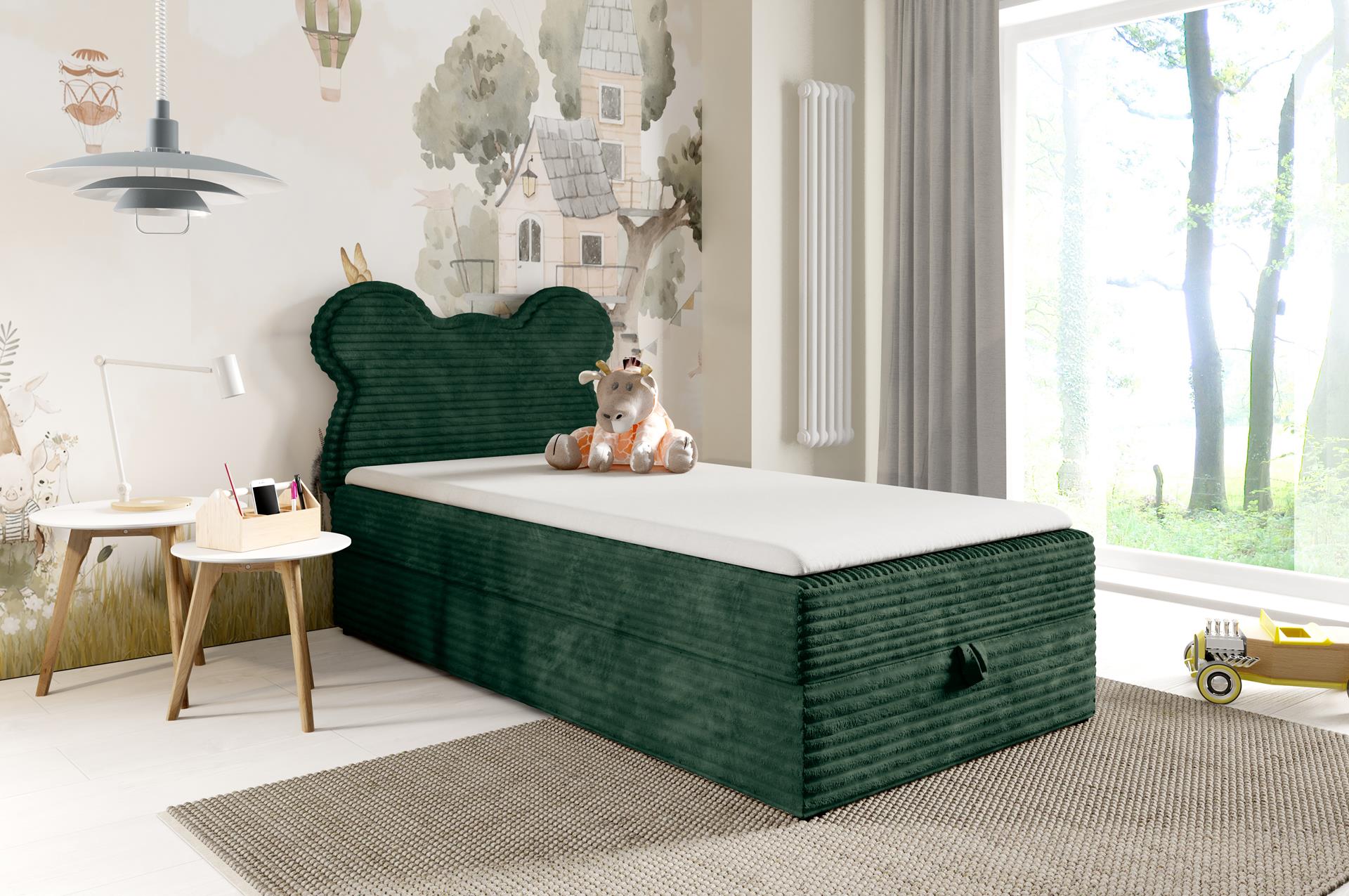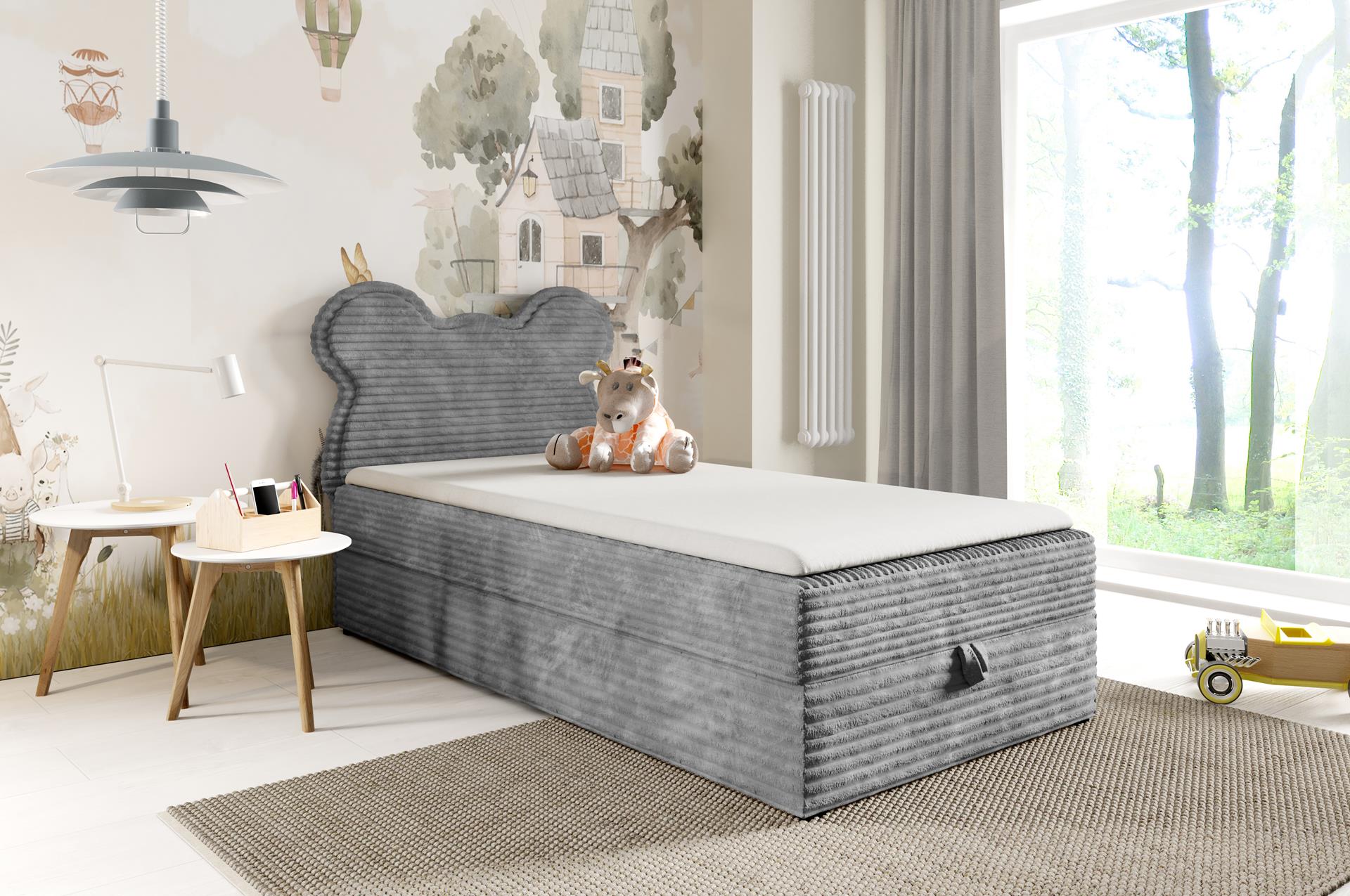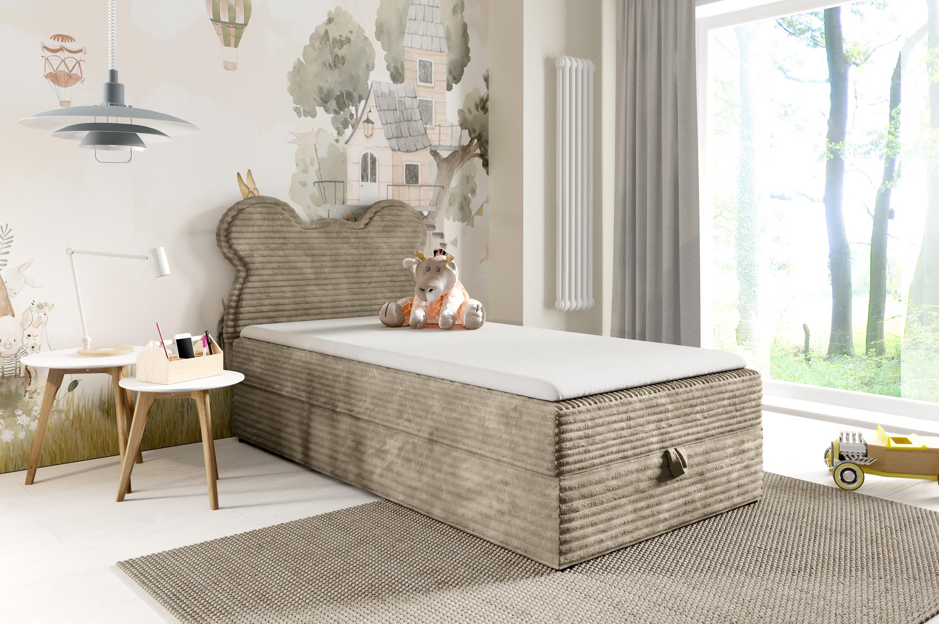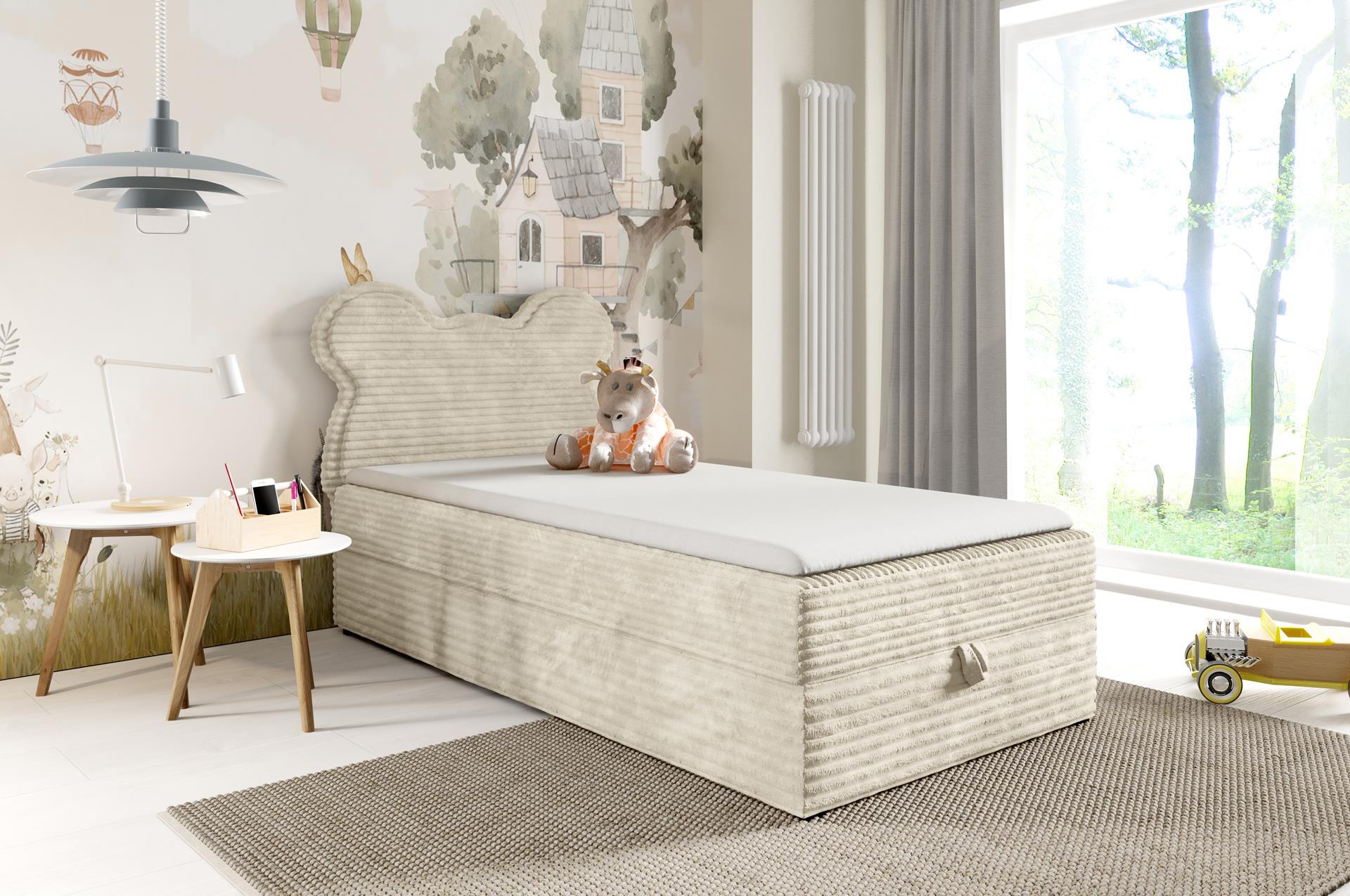 Łóżko Bumi ma funkcjonalny schowek z wygodnym automatem. Kilka sekund i pościel, koce czy zabawki znikają z pola widzenia – więcej miejsca na zabawę i odpoczynek.