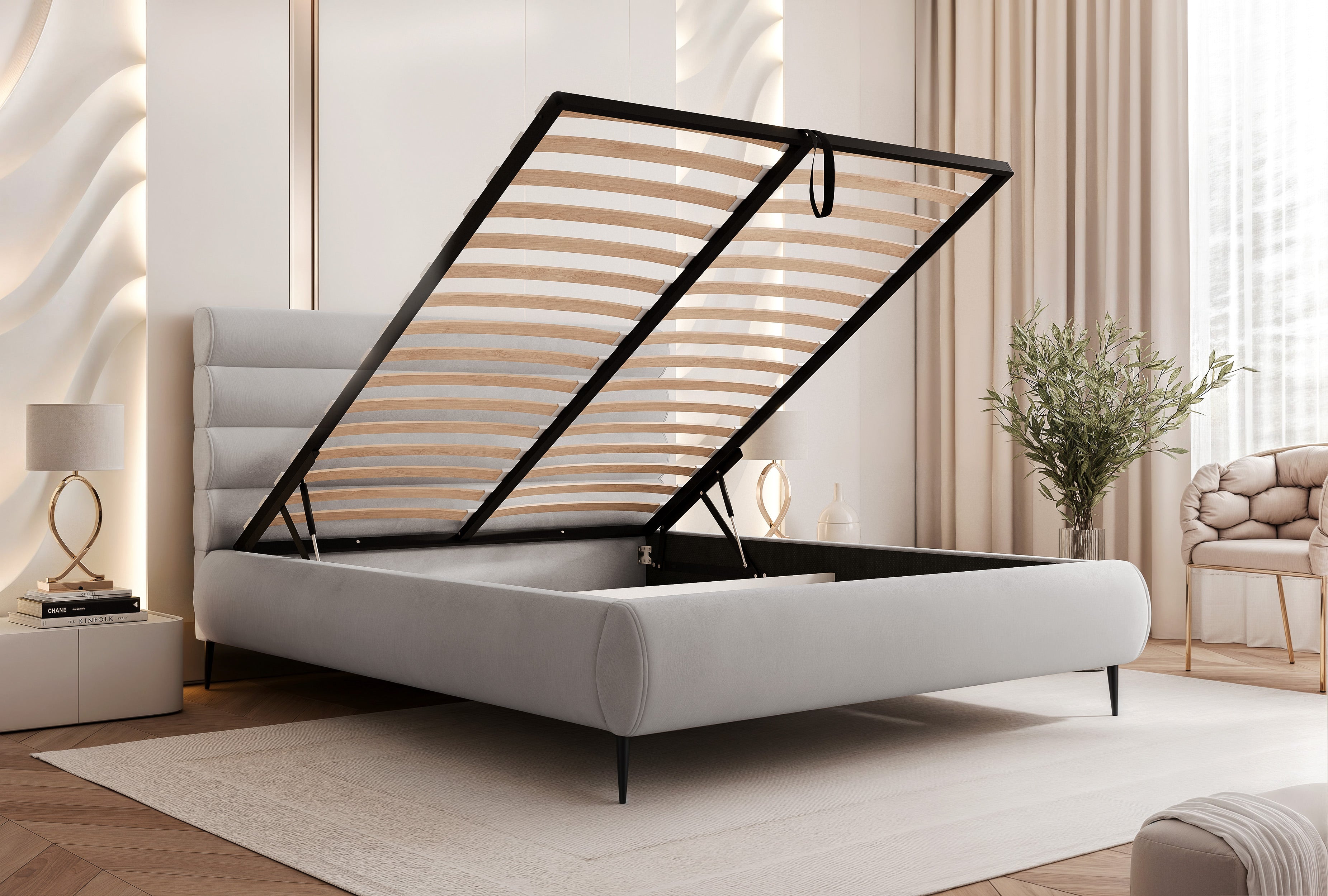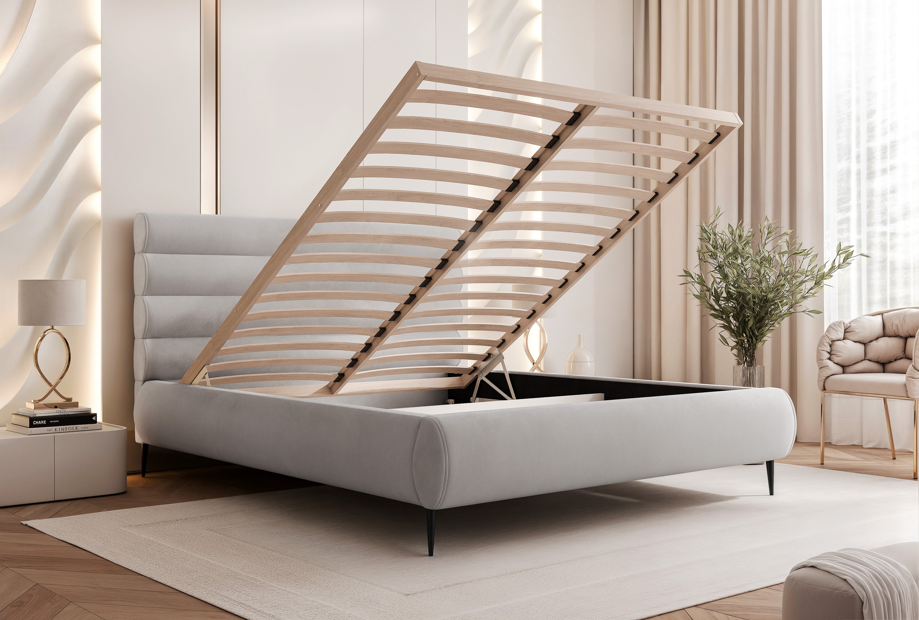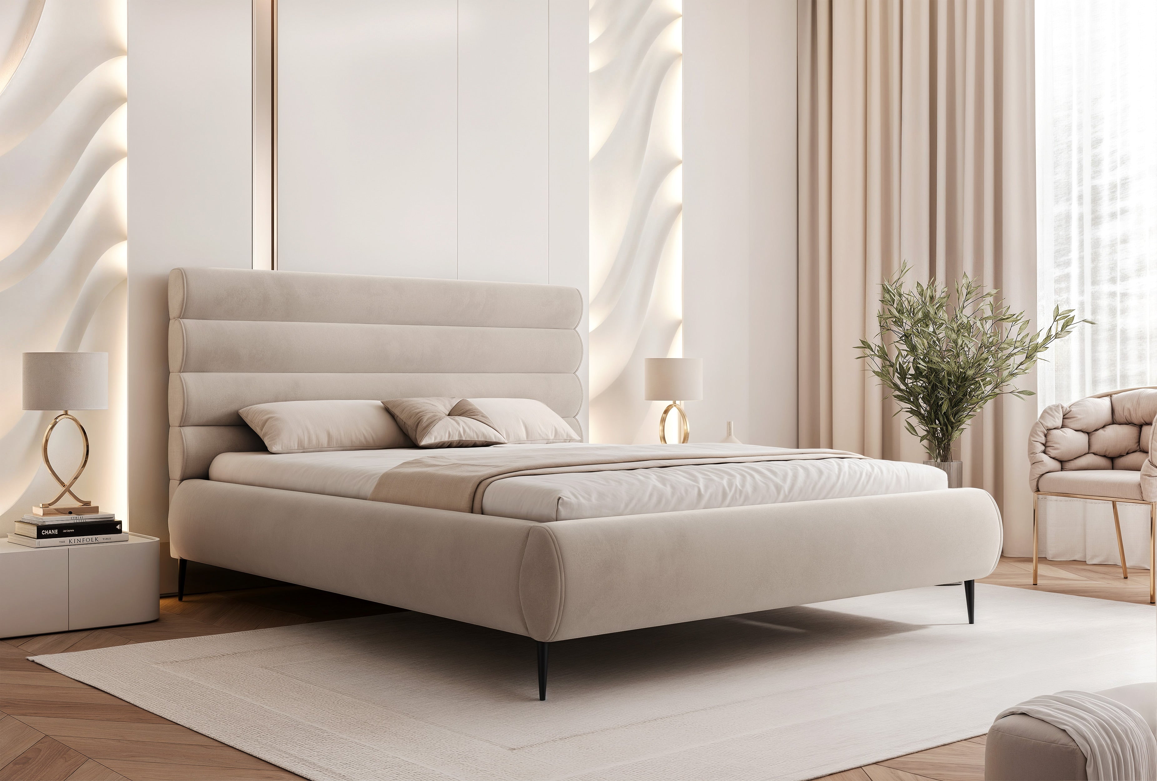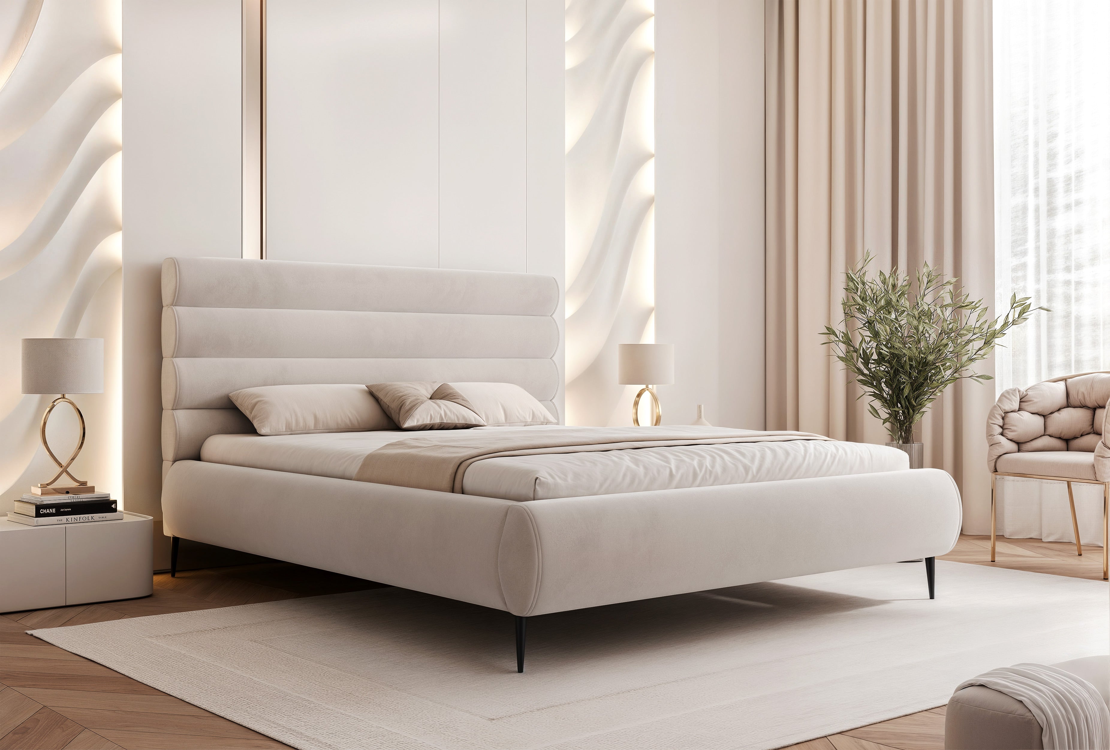 Delikatnie wyprofilowane nogi podkreśla wizualną lekkość łóżka, dodając mu subtelnej finezji. Idealnie sprawdzi się w przestrzeniach, gdzie liczy się zarówno design, jak i funkcjonalność – zapewniając łatwy dostęp do przestrzeni pod łóżkiem i ułatwiając utrzymanie porządku.