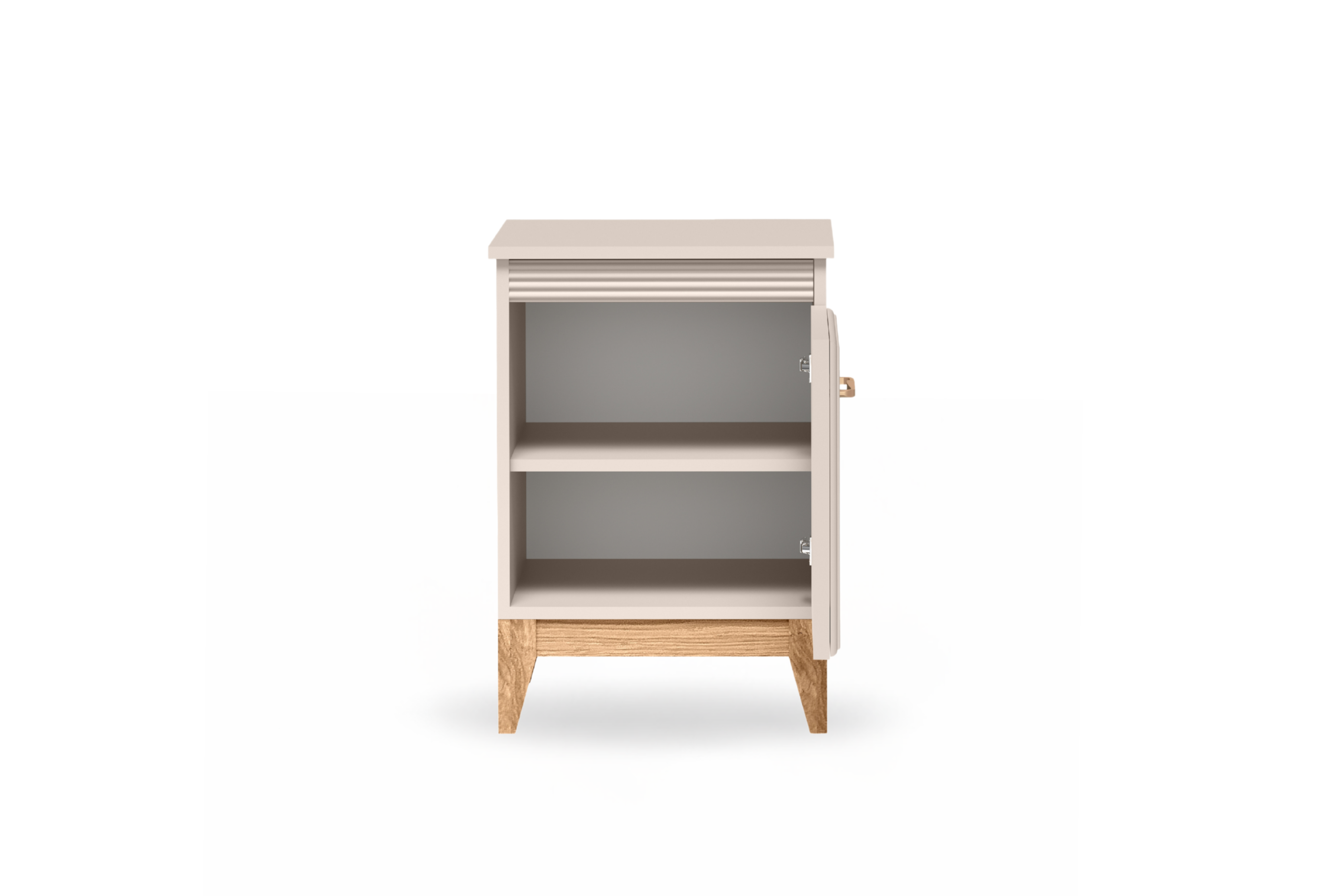 Szafka została zaprojektowana z myślą o wygodzie codziennego użytkowania. Zamykana przestrzeń z wewnętrzną półką pozwala uporządkować przedmioty, które chcesz mieć pod ręką, ale poza widokiem.
