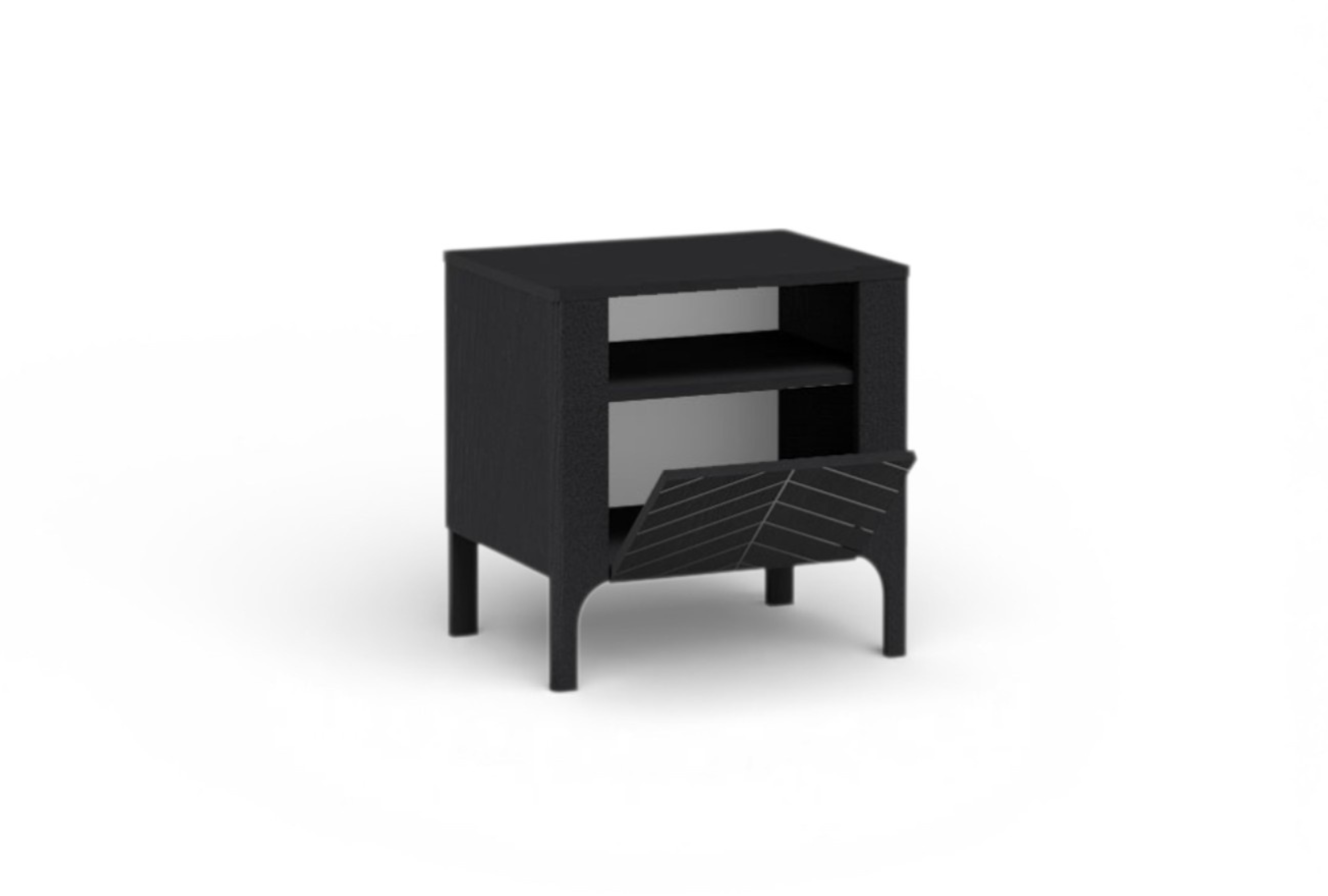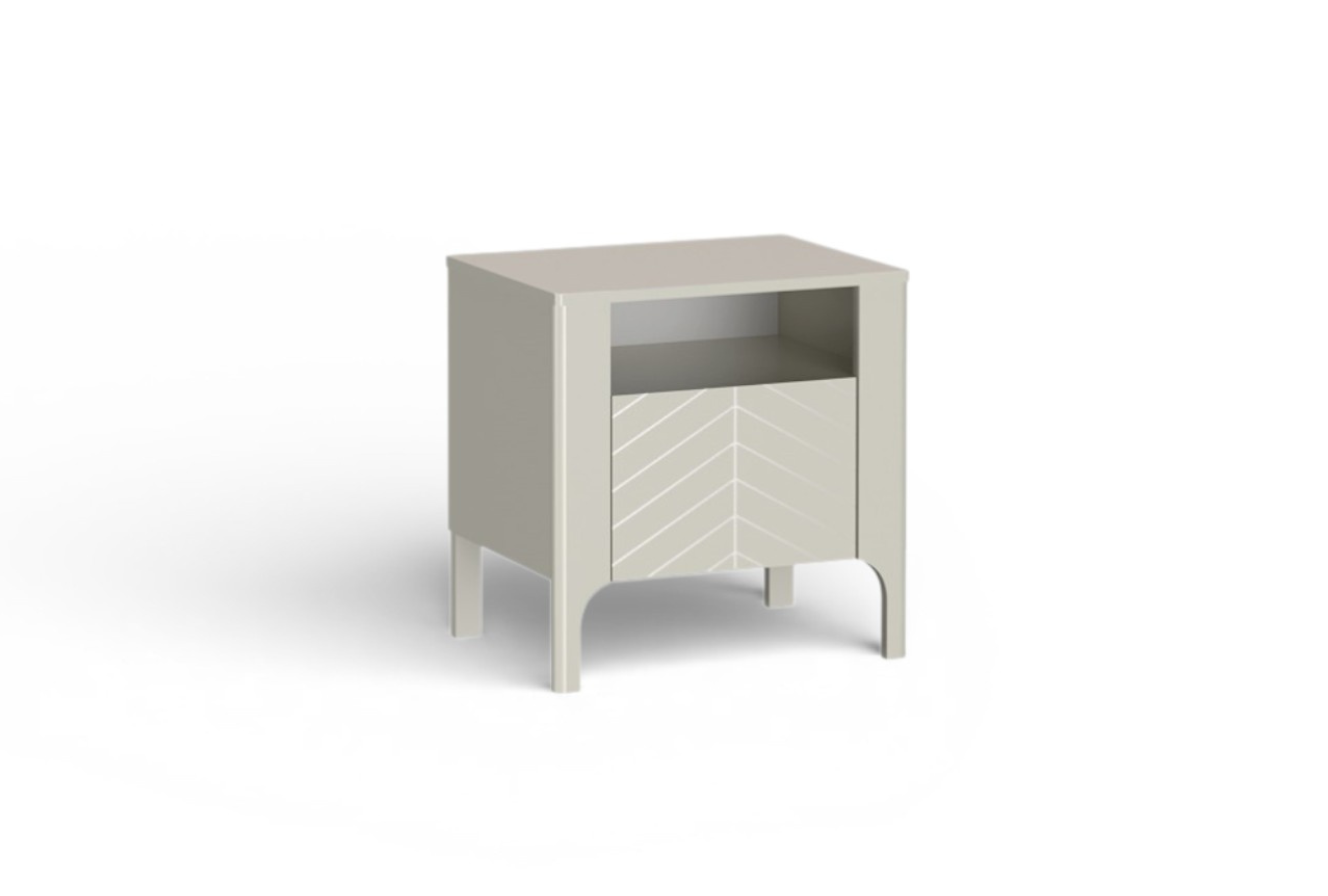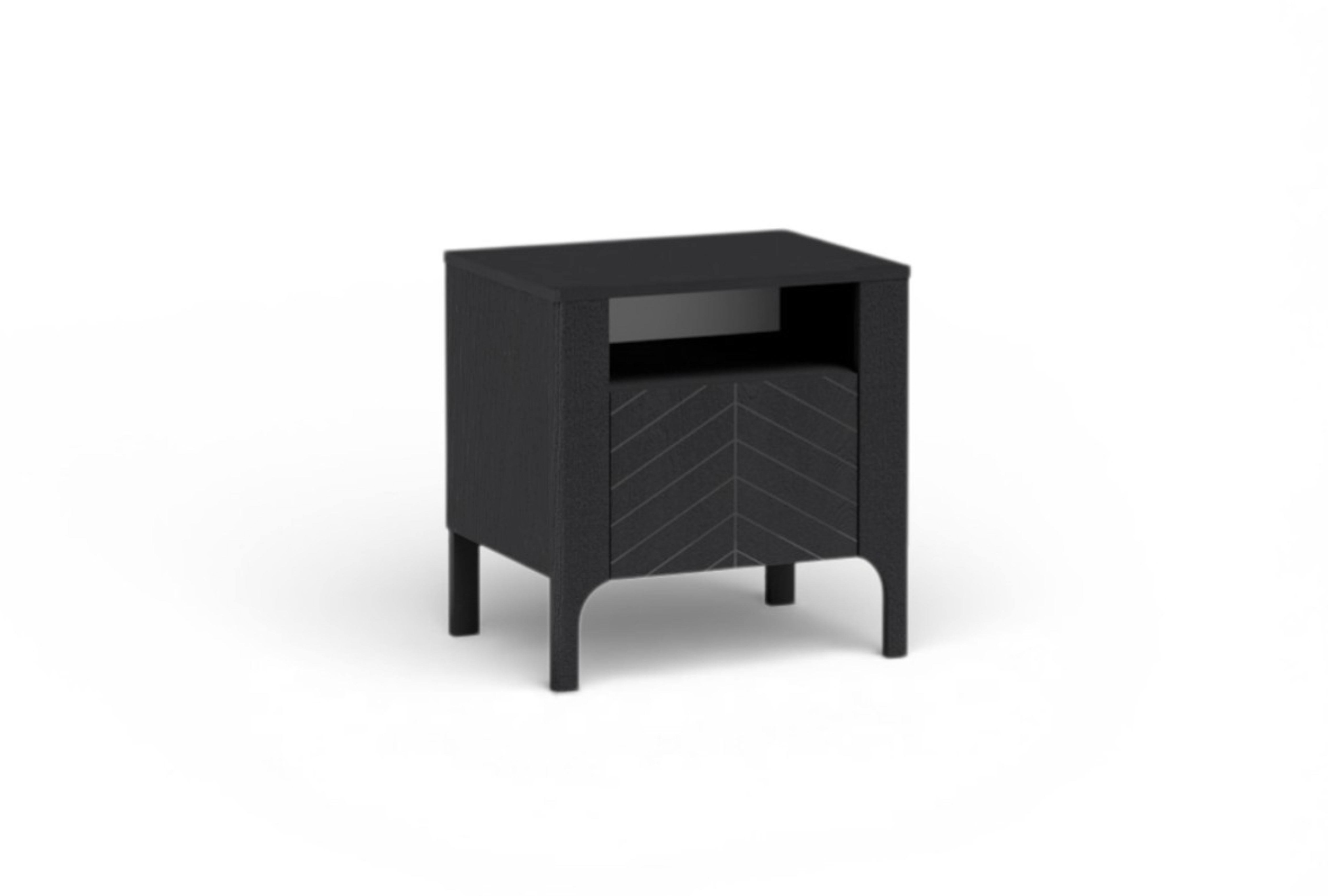 Szafka nocna Monteli to idealne uzupełnienie kolekcji – łączy minimalistyczną formę z praktycznym układem przechowywania. Dekoracyjny front w jodełkę nadaje jej elegancki charakter, a kompaktowy rozmiar sprawia, że świetnie sprawdzi się nawet w niewielkich sypialniach.