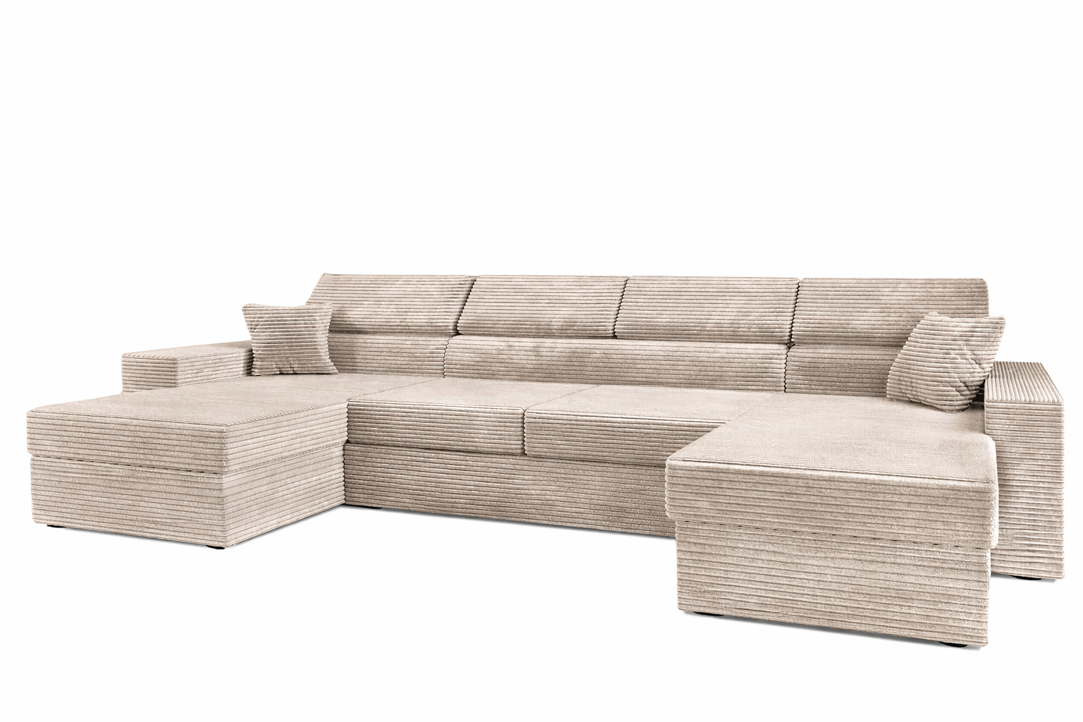 Olivio oferuje dwa przestronne pojemniki ukryte pod siedziskiem. Zmieścisz w nich pościel, koce, poduszki – wszystko, czego potrzebujesz do rozłożenia narożnika na noc. Żadnych szaf do pościeli, żadnego przerzucania rzeczy z miejsca na miejsce. Wszystko jest tam, gdzie powinno być.